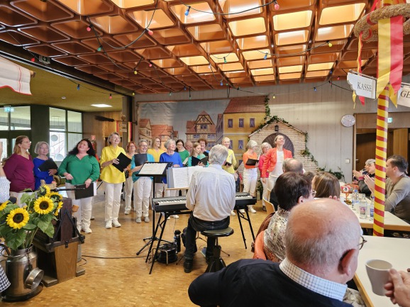 Vergangenen Sonntag (18.05.2025) haben wir für die Bewohner*innen und die Mitarbeitenden des Seniorenzentrums Sonnenhalde ein kleines Konzert gegeben. Unser Publikum hat bei den bekannten Schlagern und Volksliedern gerne mitgesungen. Wir freuen uns immer, wenn wir mit unserem Gesang, den Bewohner*innen Vergnügen bereiten können.