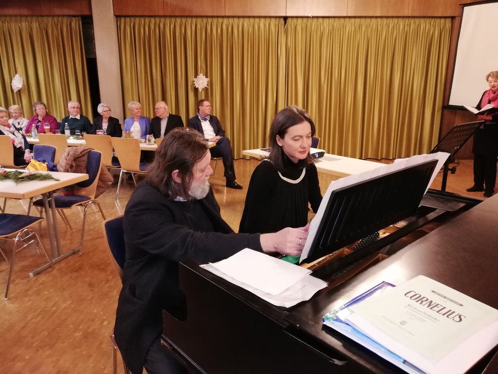 Am Freitag vor dem dritten Advent feierte der Liederkranz Musberg im Bürgersaal Weihnachten und den sängerischen Jahresabschluss 2018. Mit einem kleinen Programm gestaltet vom SwingTeamLE und von unserer Chorleiterin Uljana Lauterbach mit ihrem Mann Peter (zwei Weihnachtslieder von Peter Cornelius (1824-1874) gab es den adäquaten musikalischen Auftakt zu einem gemütlichen Abend.