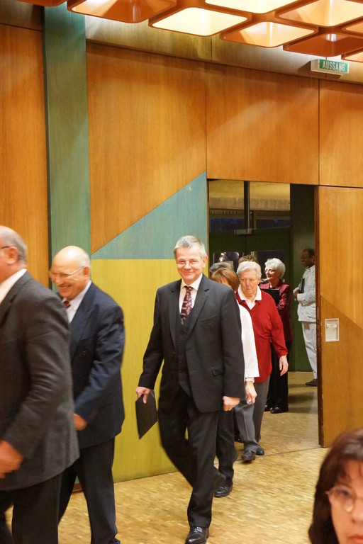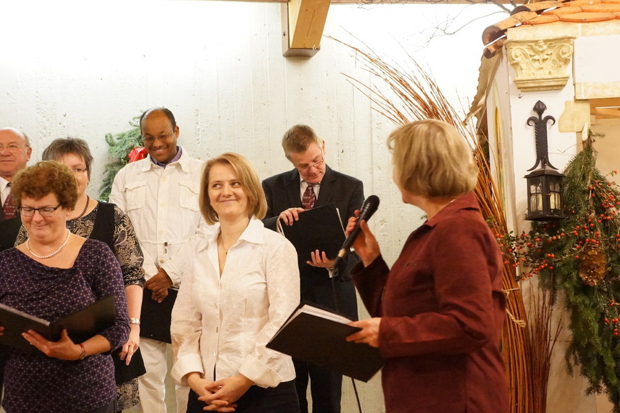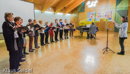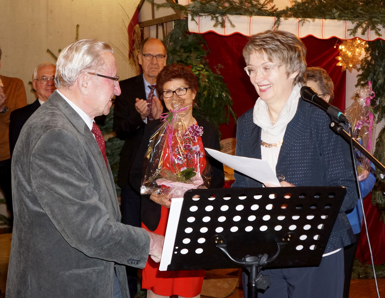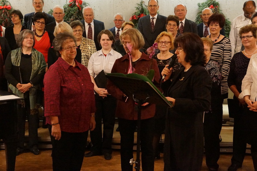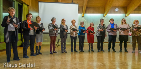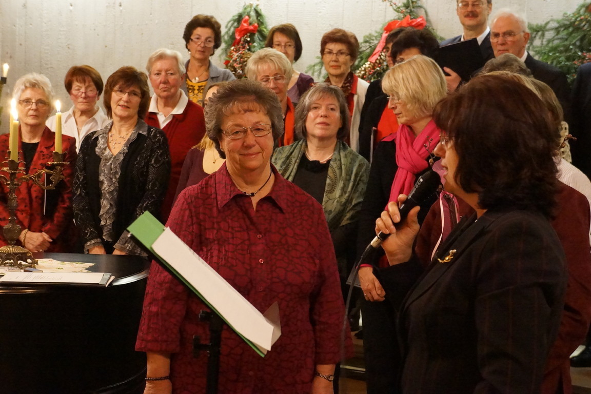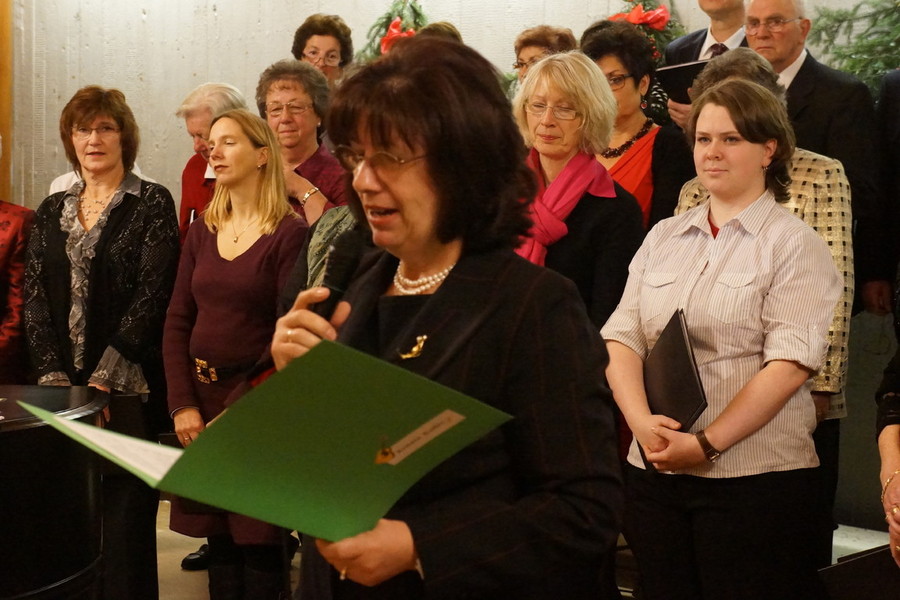 Mit Bachs „Ich steh an Deiner Krippe hier" leiteten beide Chöre zum hochoffiziellen Teil der Veranstaltung über, den Ehrungen und den Danksagungen.