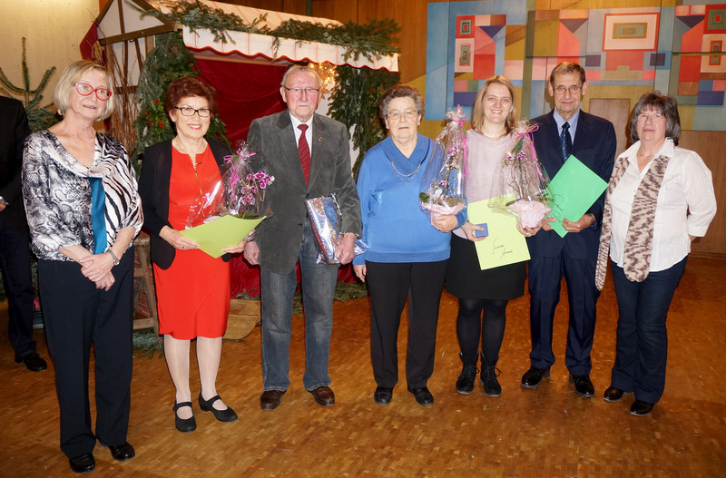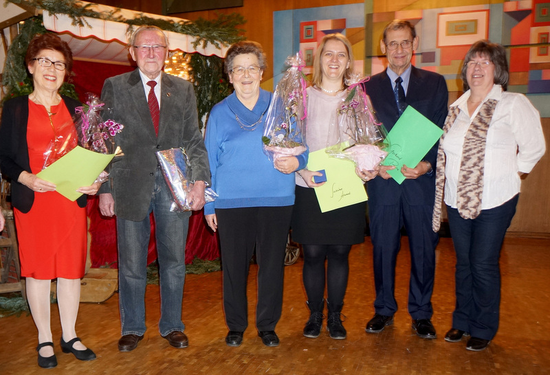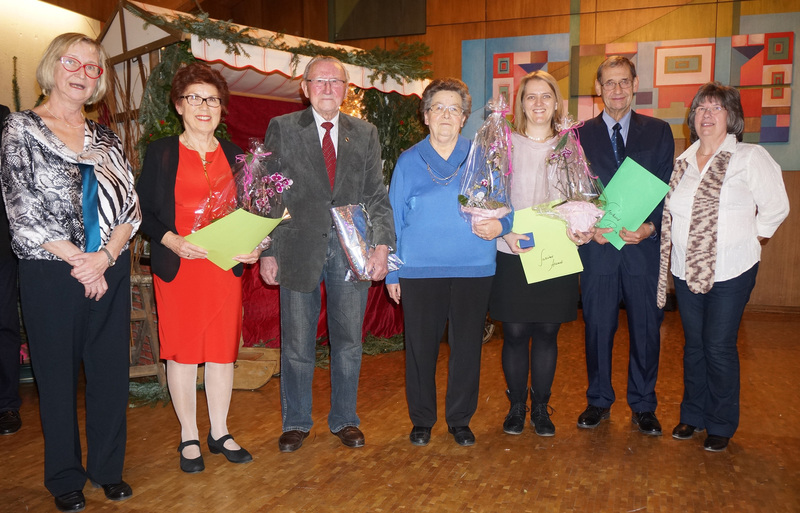 Im Rahmen unserer Weihnachtsfeier wurden langjährige und verdiente Mitglieder geehrt: Margarete Günther für 65 Jahre, Gisela Schneider (in Abwesenheit) für 50 Jahre, Ute Rost, Karl Bühl, Rainer