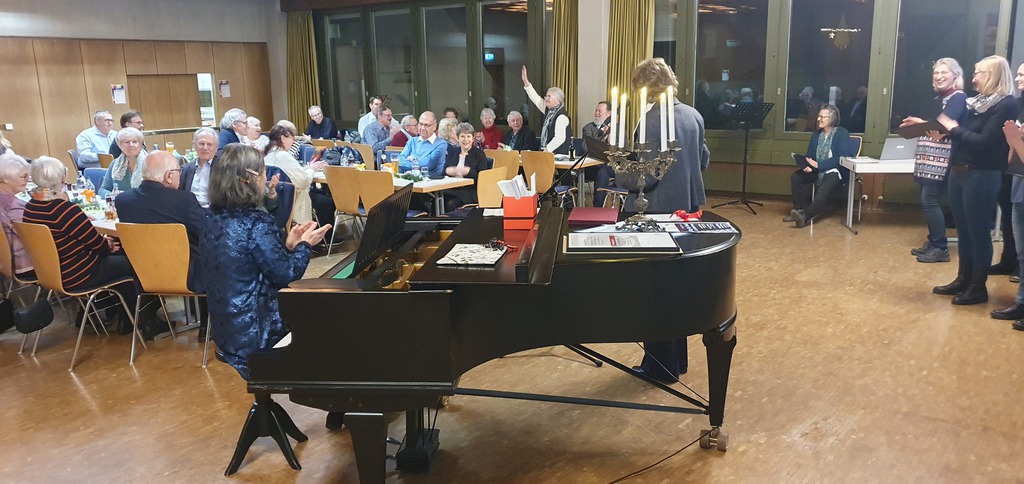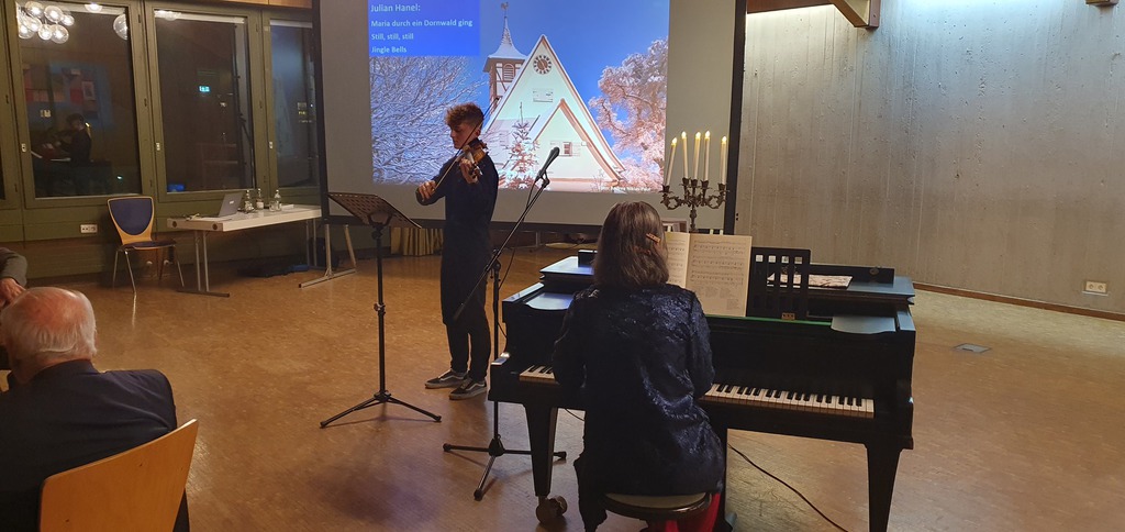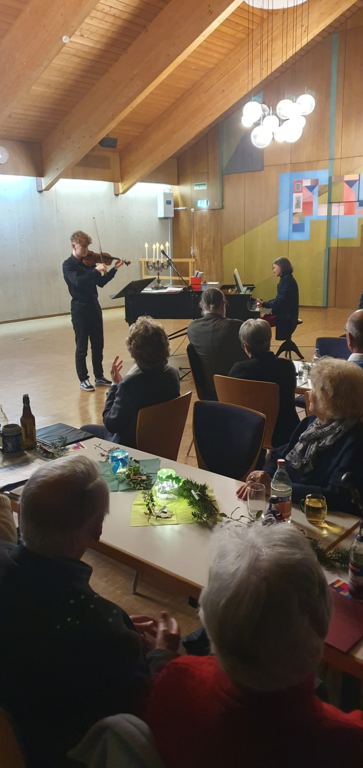Weihnachtslieder auf seiner Geige vorgespielt, bei Jingle Bells haben alle den Refrain mitgesungen. Alle Gäste haben gemeinsam beliebte Weihnachtslieder gesungen. Ganz herzlichen Dank an alle, die