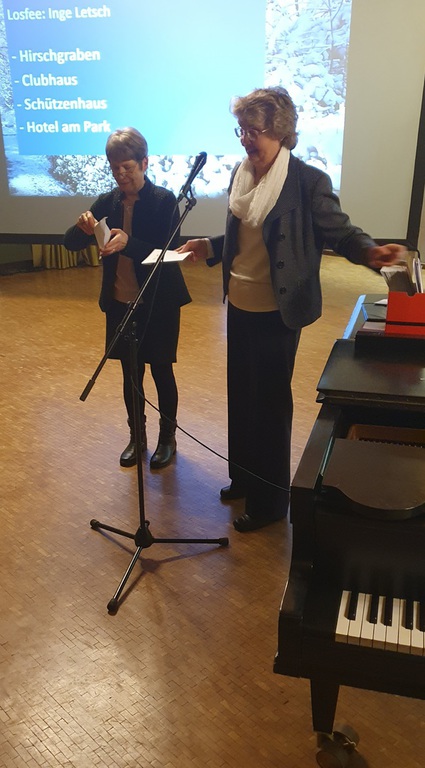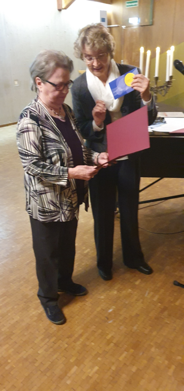 Die erste Vorsitzende, Andrea Niklas-Paul, dankte in ihrer Ansprache allen aktiven und passiven Sängerinnen und Sänger für ihr Engagement, ohne das der Chor nicht funktionieren würde. Es war ihr eine sichtliche Freude, Margret Günther für sechzig Jahre Vereinsmitgliedschaft zu ehren. Margret Günther sang nicht nur bis zum Ende des letzten Jahres im Stammchor, sondern ist heute noch eine begeisterte Kuchenbäckerin, die mit ihren Kreationen sehr zum leckeren Kuchenbuffet unter anderem beim Apfel- und Mostfest beiträgt. Als Ehrengast konnten wir zudem die stellvertretende Vorsitzende des Chorverbandes Filder Christine Eisert begrüßen. Und sie hatte auch Überraschungen dabei. Im Namen des Chorverbandes verlieh sie Susanne Baumeister und Brigitte Kreß die goldene Ehrennadel des Chorverbands Filder. Beide sind seit Jahren sowohl im Stammchor (bis zu seiner Auflösung 2017) als auch im SwingTeamLE (seit seiner Gründung) sängerisch aktiv. Darüber hinaus engagieren sich beide verantwortungsvoll seit vielen Jahren in wichtigen Funktionen im Vereinsvorstand. Susanne Baumeister leitete den Chor 16 Jahre als erste Vorsitzende. Mit einem kräftigen Applaus bedankten sich die Anwesenden bei beiden für diese herausragende Arbeit, natürlich verbunden mit der Hoffnung, dass sie auch in Zukunft ihre Erfahrung und Begeisterung in den Verein einbringen.