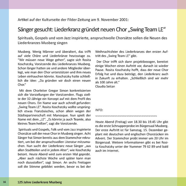 Erfahren Sie mehr über unseren Chor in Musberg, Leinfelden-Echterdingen, das SwingTeamLE.