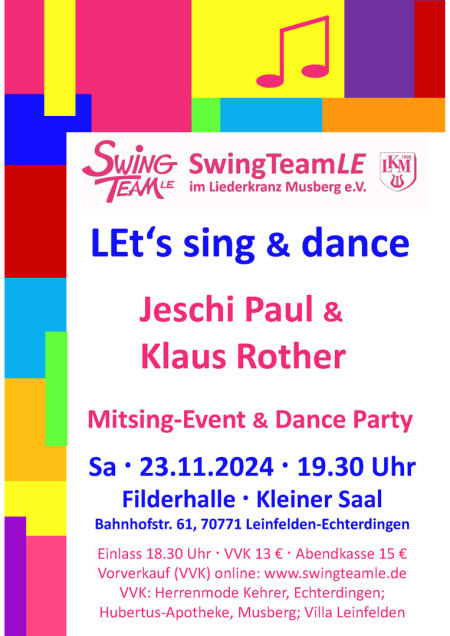 wir laden Euch herzlich ein zu LEt’s sing & dance, Mitsing-Event & Dance Party.