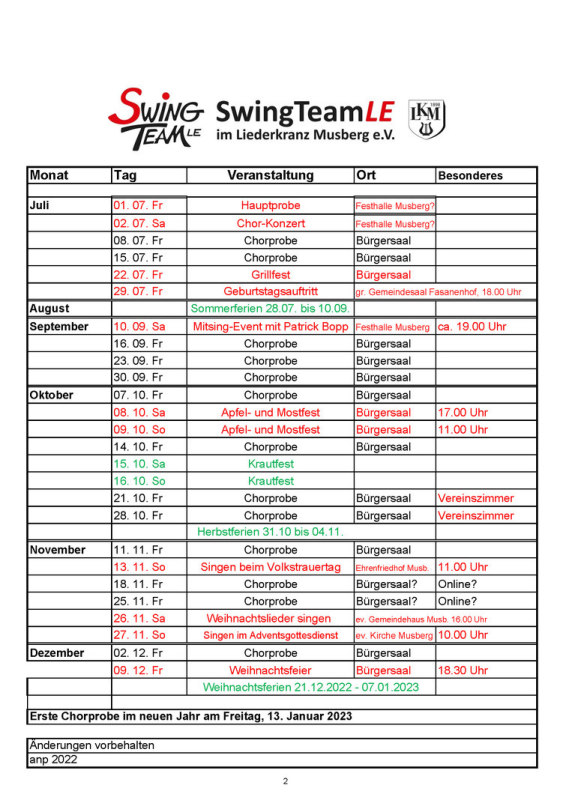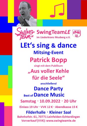 Am Sonntag, 18.09. singt das SwingTeamLE im Gottesdienst in der evangelischen Kirche in Musberg. Beginn 10 Uhr.